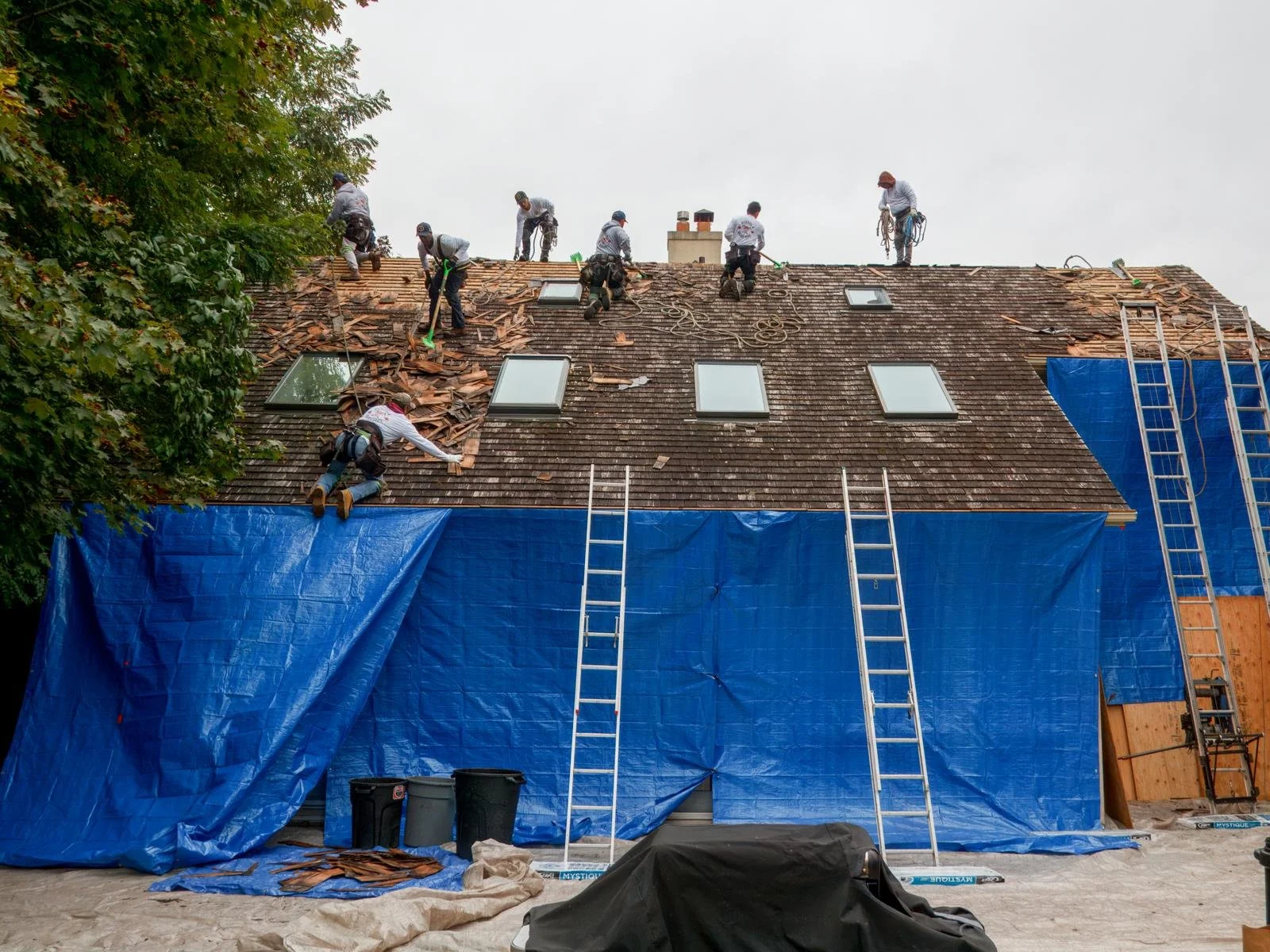 We respond quickly, inspect the damage, install emergency tarping if needed, and clearly explain next steps, including guidance for insurance documentation.